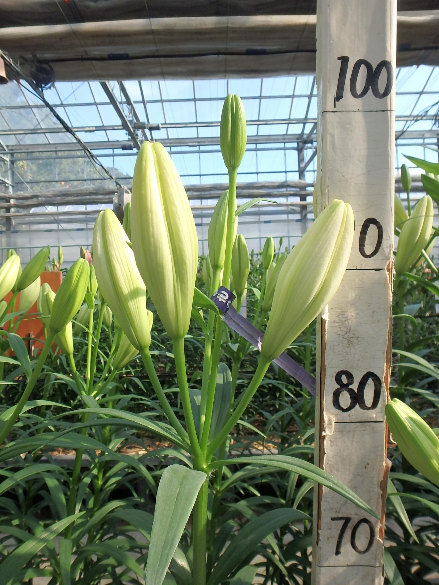 2017年NL産 抑制試験LA/A アソポス 2018/10/8 2018/10/15 2018/11/12 2018/11/20 2018/11/29 産地 オランダ 品名 アソポス 英語名 Asopus サイズ 14-16 リン数 最小 3 リン数 最多 6 草丈 100 到花日数 中生 色 白 交配系統 LAハイブリッド 定植日 2018/9/19 開花日 2018/11/22 花直径 21 蕾大きさ 11 枝長 7