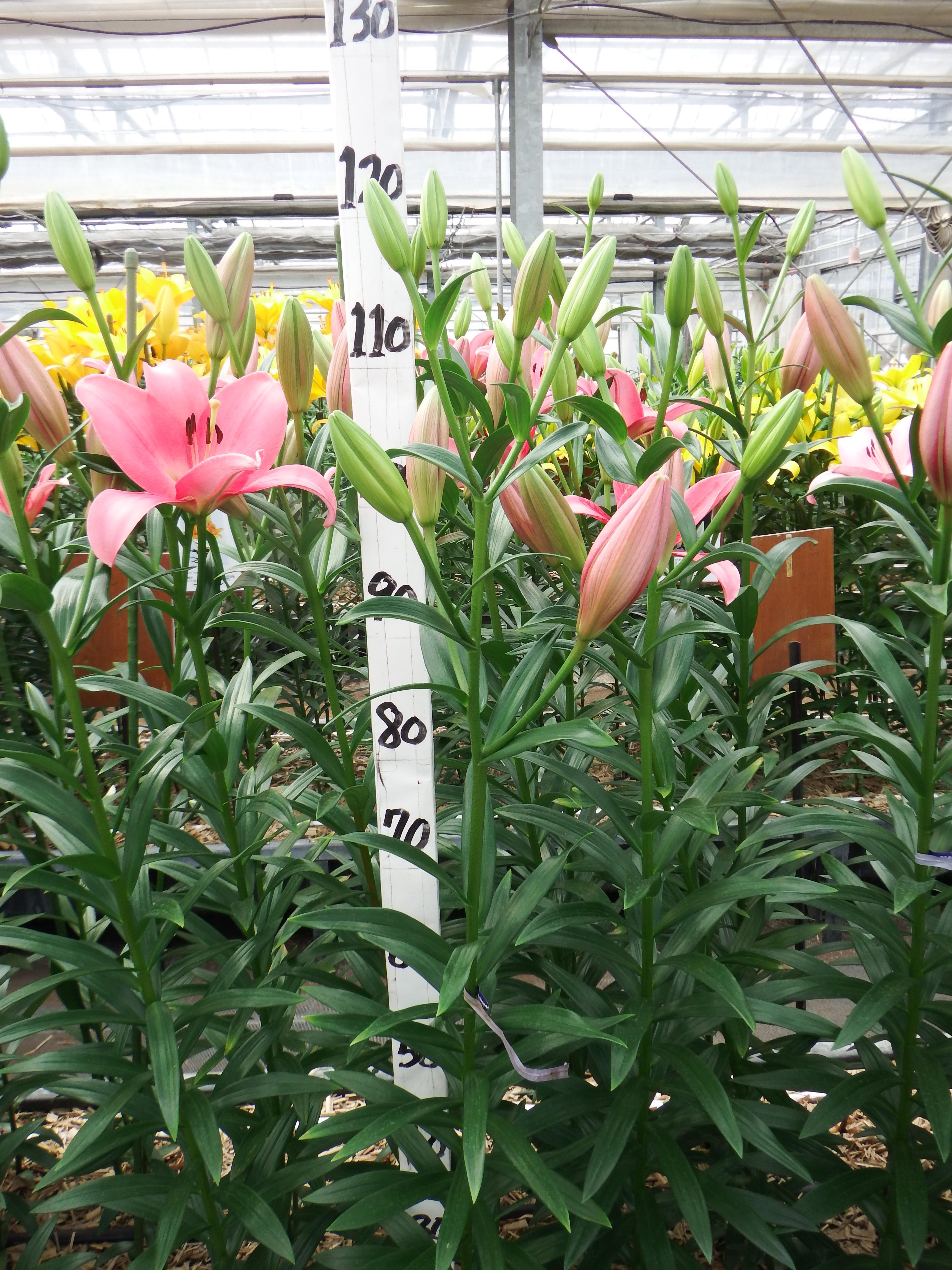 2024年SH産 促成試験 LA 部屋3 ティレーノ 2024/11/27 2024/12/23 2025/1/15 2025/2/7 2025/2/11 産地 CH 品名 ティレーノ 英語名 Tirreno サイズ 12-14 リン数 最小 3 リン数 最多 6 草丈 125 到花日数 晩生 色 ピンク 交配系統 LAハイブリッド 定植日 2024/11/6 開花日 2025/2/4 花直径 20 蕾大きさ 12 枝長 10.5