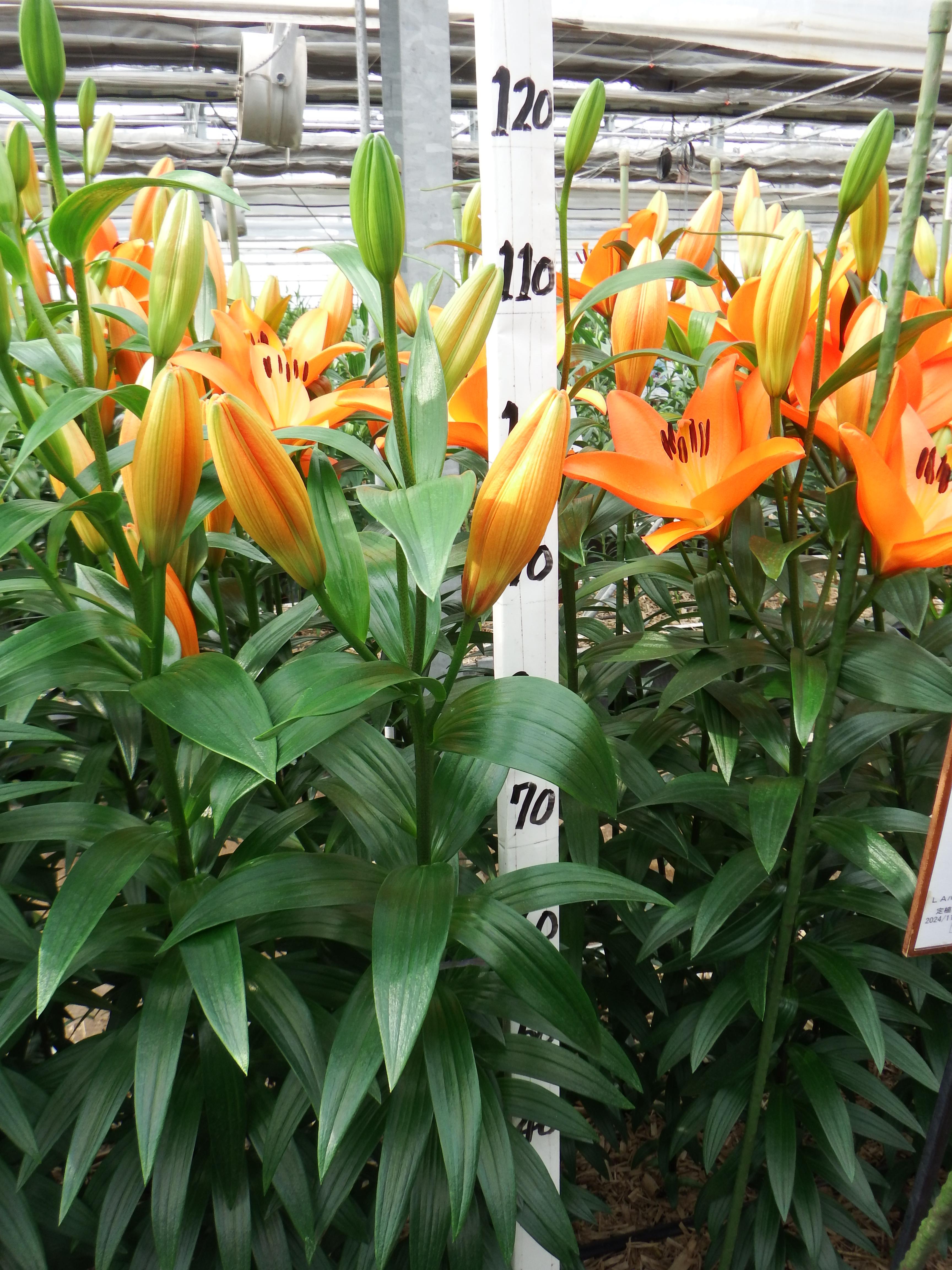 2024年SH産 促成試験 LA 部屋3 バローロ 2024/11/26 2024/12/23 2025/1/15 2025/2/3 2025/2/7 産地 CH 品名 バローロ 英語名 Barolo サイズ 12-14 リン数 最小 3 リン数 最多 5 草丈 120 到花日数 中生 色 オレンジ 交配系統 LAハイブリッド 定植日 2024/11/6 開花日 2025/1/27 花直径 20 蕾大きさ 13 枝長 8.5