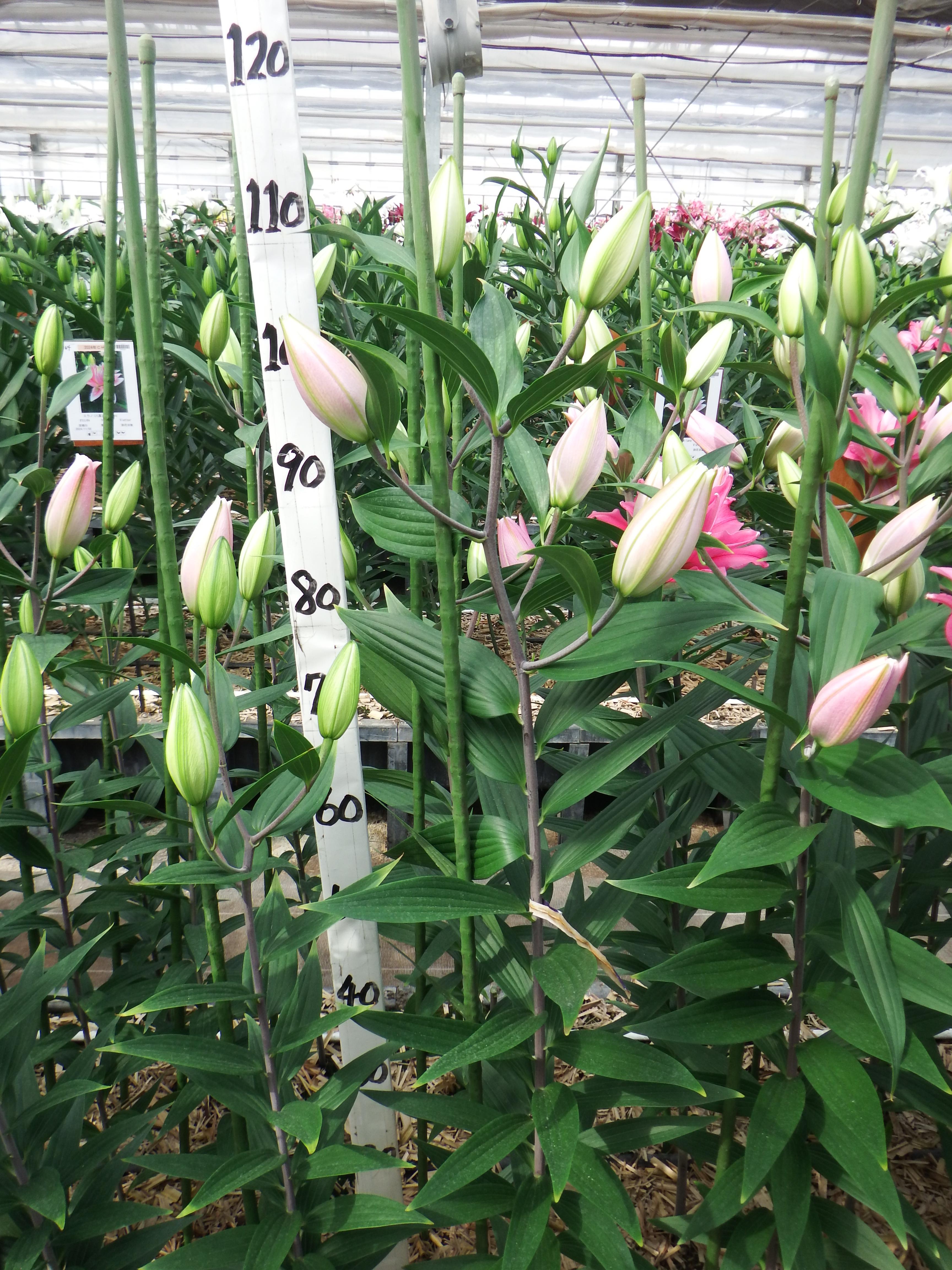2024年SH産 促成試験 OR/OT 部屋2 カダンゴ(八重) 2024/12/2 2024/12/27 2025/1/6 2025/2/21 2025/2/28 産地 NZ 品名 カダンゴ(八重) 英語名 Kadango サイズ 16-18 リン数 最小 4 リン数 最多 7 草丈 115 到花日数 早生 色 ピンク 交配系統 オリエンタル 定植日 2024/11/6 開花日 2025/2/19 花直径 20 蕾大きさ 12 枝長 10