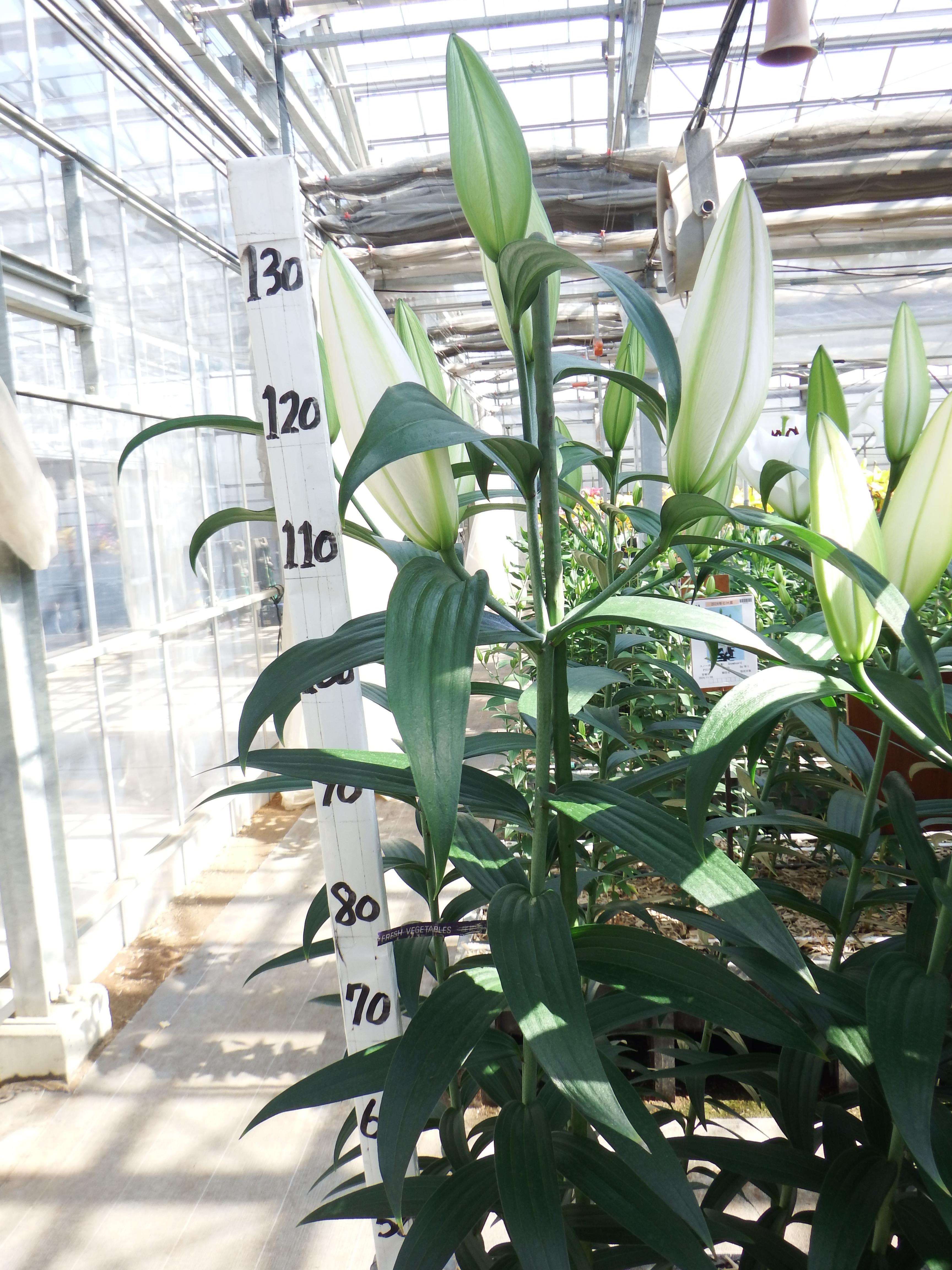 2024年SH産 促成試験 OR/OT 部屋2 オラクル 2024/11/26 2024/12/19 2025/1/6 2025/2/11 2025/2/13 産地 NZ 品名 オラクル 英語名 Oracle サイズ 20-22 リン数 最小 3 リン数 最多 5 草丈 130 到花日数 早生 色 白 交配系統 OTハイブリッド 定植日 2024/11/6 開花日 2025/2/10 花直径 26 蕾大きさ 18 枝長 11