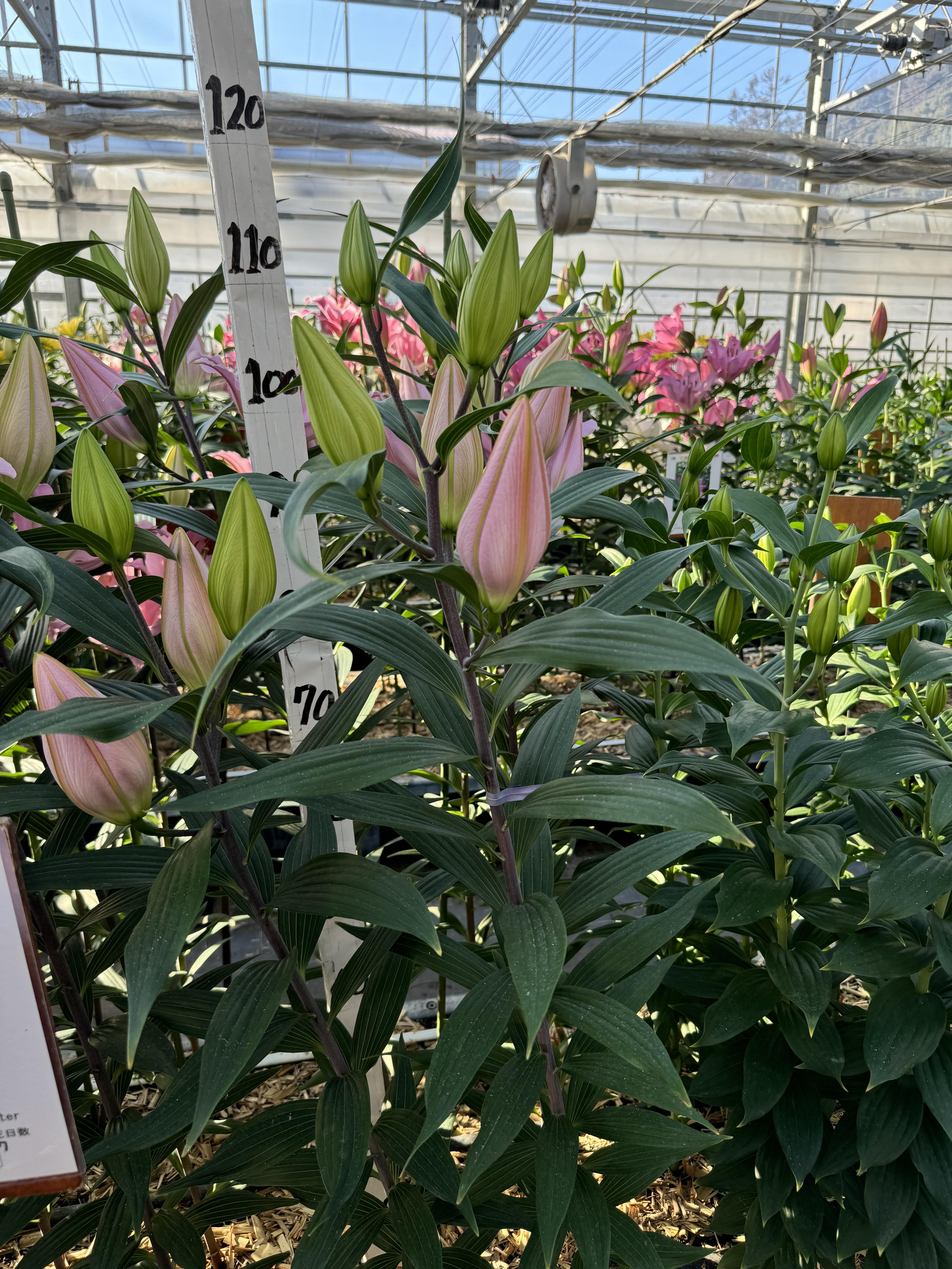 2024年SH産 促成試験 OR/OT 部屋1 オバダ 2024/11/29 2024/12/19 2025/1/8 2025/2/14 2025/2/19 産地 NZ 品名 オバダ 英語名 Ovada サイズ 16-18 リン数 最小 4 リン数 最多 7 草丈 115 到花日数 中生 色 ピンク 交配系統 オリエンタル 定植日 2024/11/6 開花日 2025/2/11 花直径 20 蕾大きさ 15 枝長 8