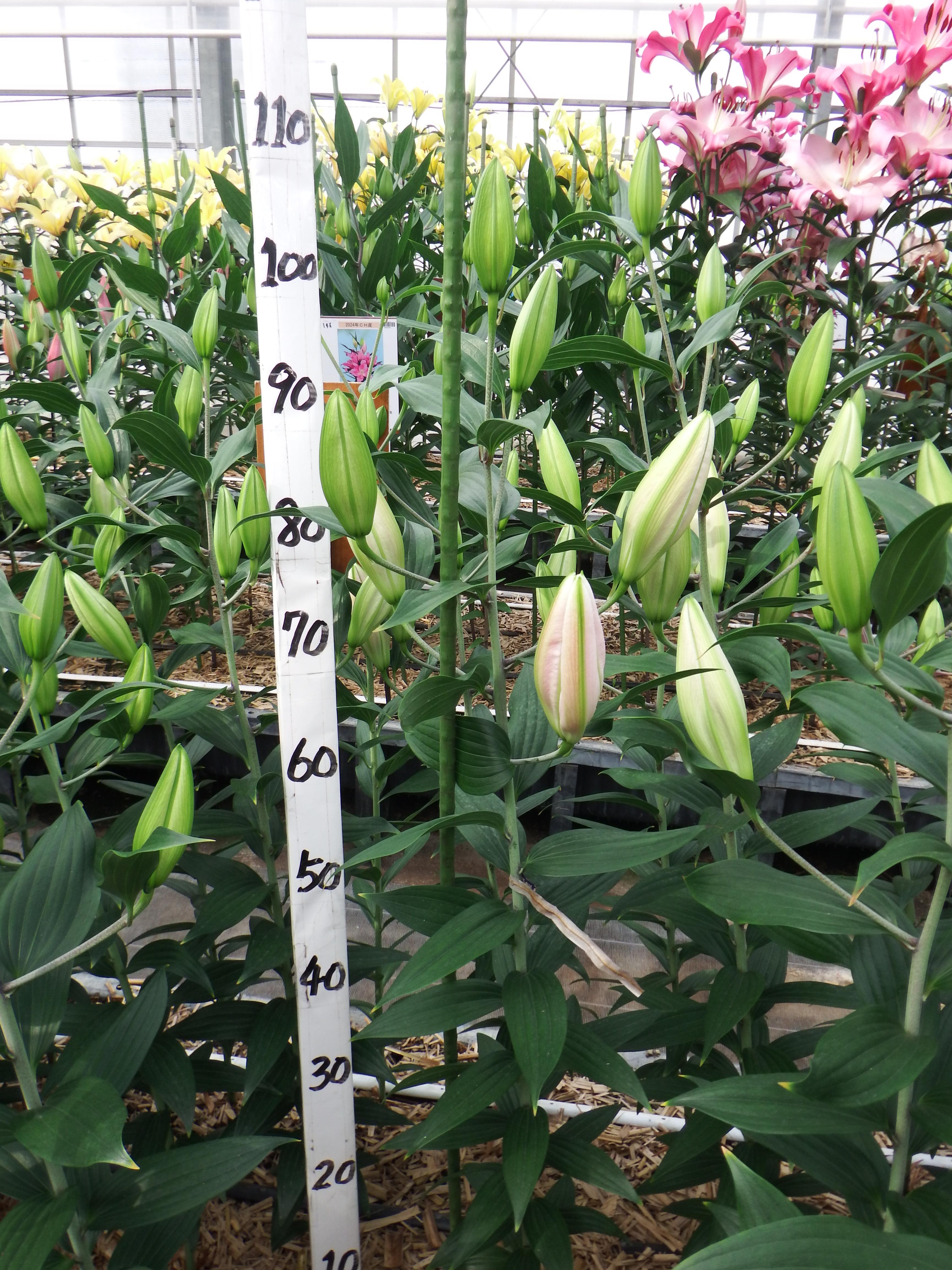 2024年SH産 促成試験 OR/OT 部屋1 ソルボンヌ 2024/12/9 2024/12/23 2025/1/6 2025/2/21 2025/2/25 産地 NZ 品名 ソルボンヌ 英語名 Sorbonne サイズ 16-18 リン数 最小 5 リン数 最多 7 草丈 105 到花日数 早生 色 ピンク 交配系統 オリエンタル 定植日 2024/11/6 開花日 2025/2/24 花直径 22 蕾大きさ 14 枝長 11