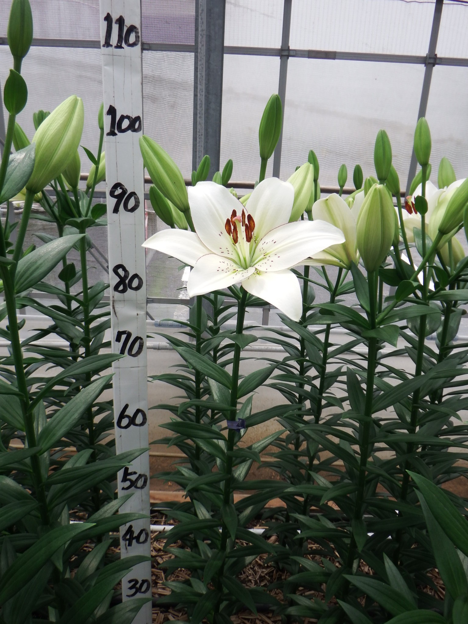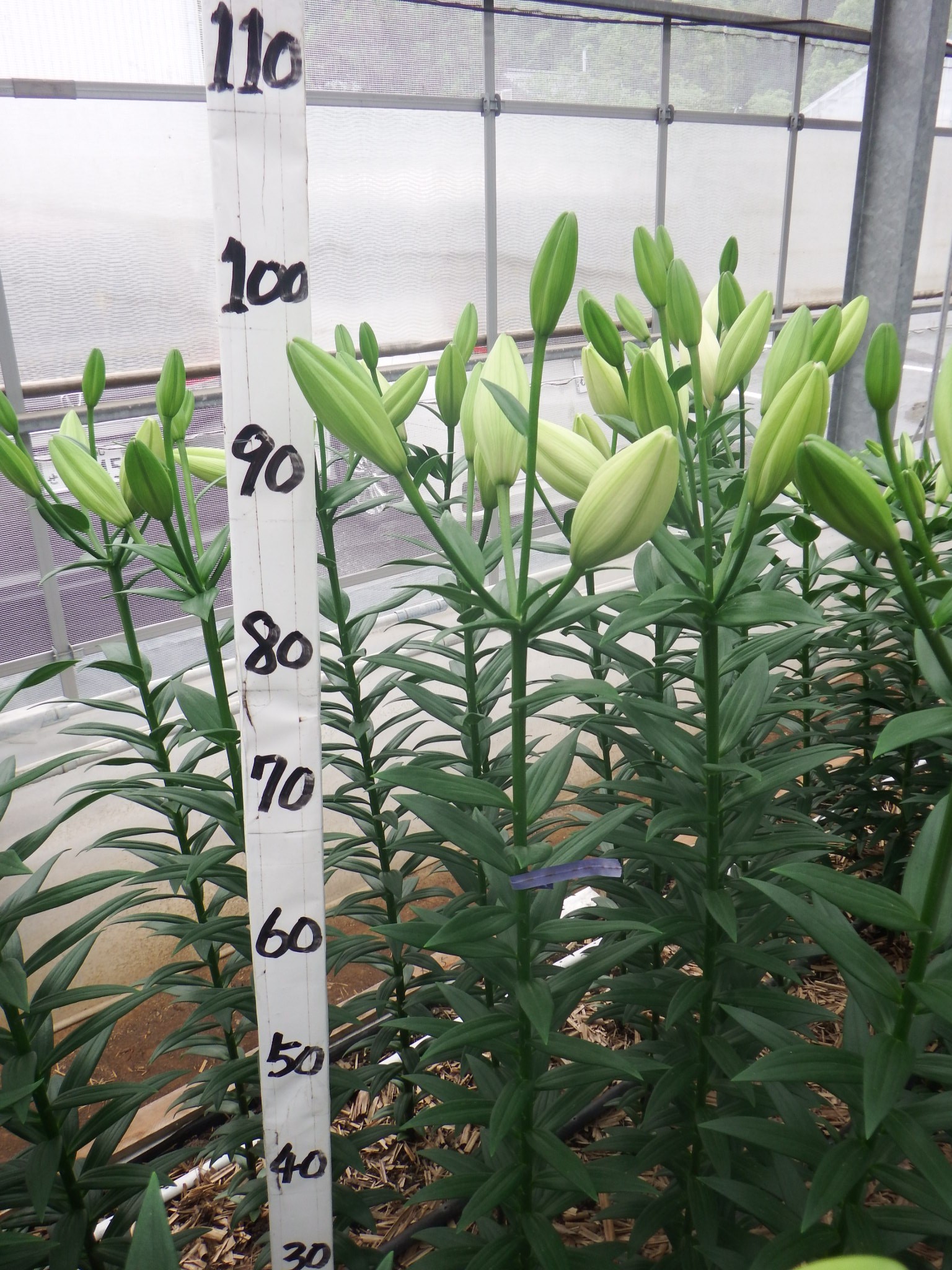 2024年NL産 促成試験 LA 部屋1 アイライナー 2025/5/6 2025/5/19 2025/5/29 2025/6/11 2025/6/12 産地 オランダ 品名 アイライナー 英語名 Eyeliner サイズ 14-16 リン数 最小 3 リン数 最多 5 草丈 110 到花日数 中生 色 白 交配系統 LAハイブリッド 定植日 2025/4/10 開花日 2025/6/12 花直径 20 蕾大きさ 11 枝長 5.5