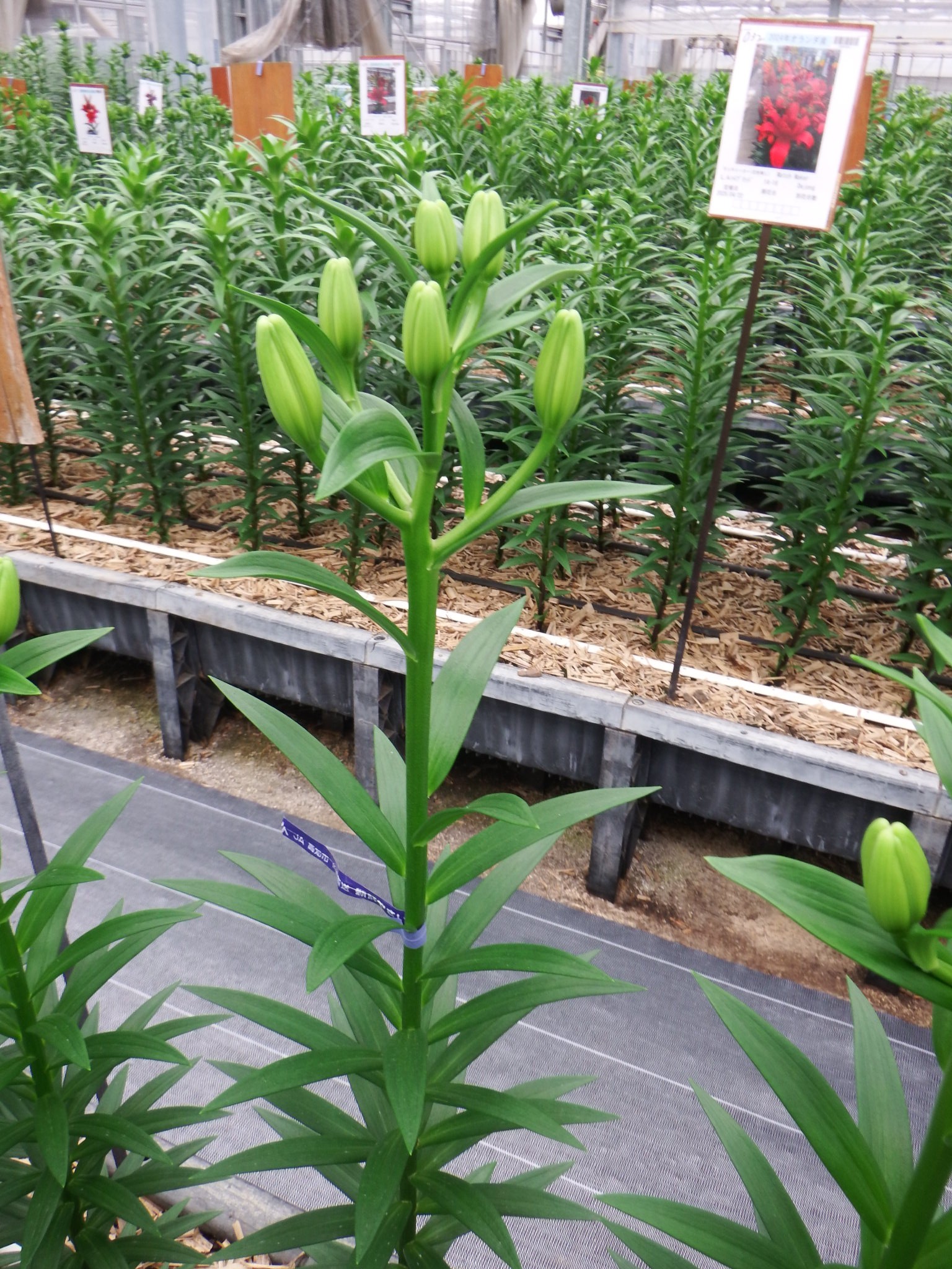 2024年NL産 促成試験 LA 部屋1 ホワイトサウンド 2025/5/12 2025/5/19 2025/5/29 2025/6/12 2025/6/13 産地 オランダ 品名 ホワイトサウンド 英語名 White Sound サイズ 14-16 リン数 最小 6 リン数 最多 8 草丈 90 到花日数 晩生 色 白 交配系統 LAハイブリッド 定植日 2025/4/10 開花日 2025/6/11 花直径 19 蕾大きさ 11 枝長 11