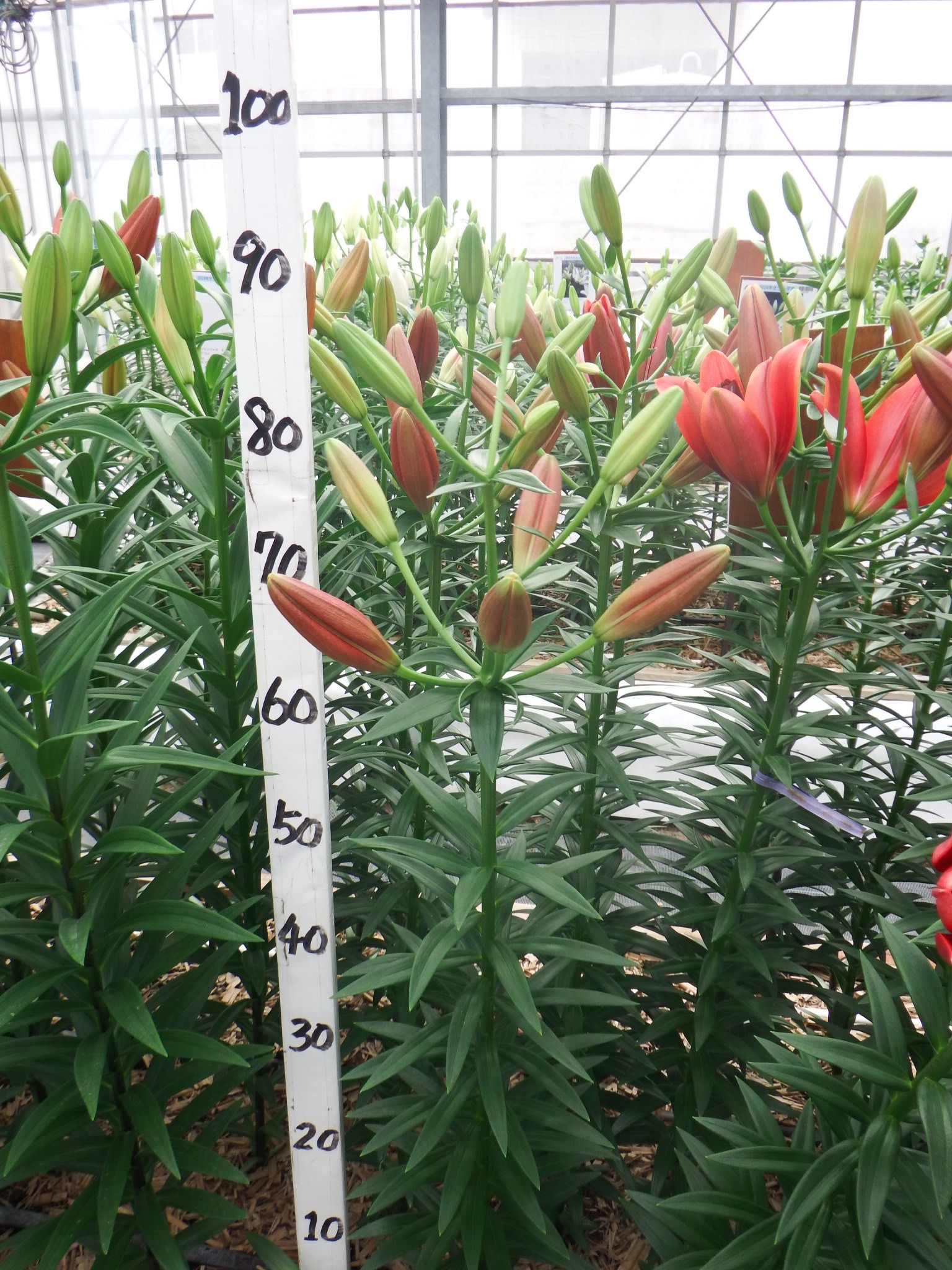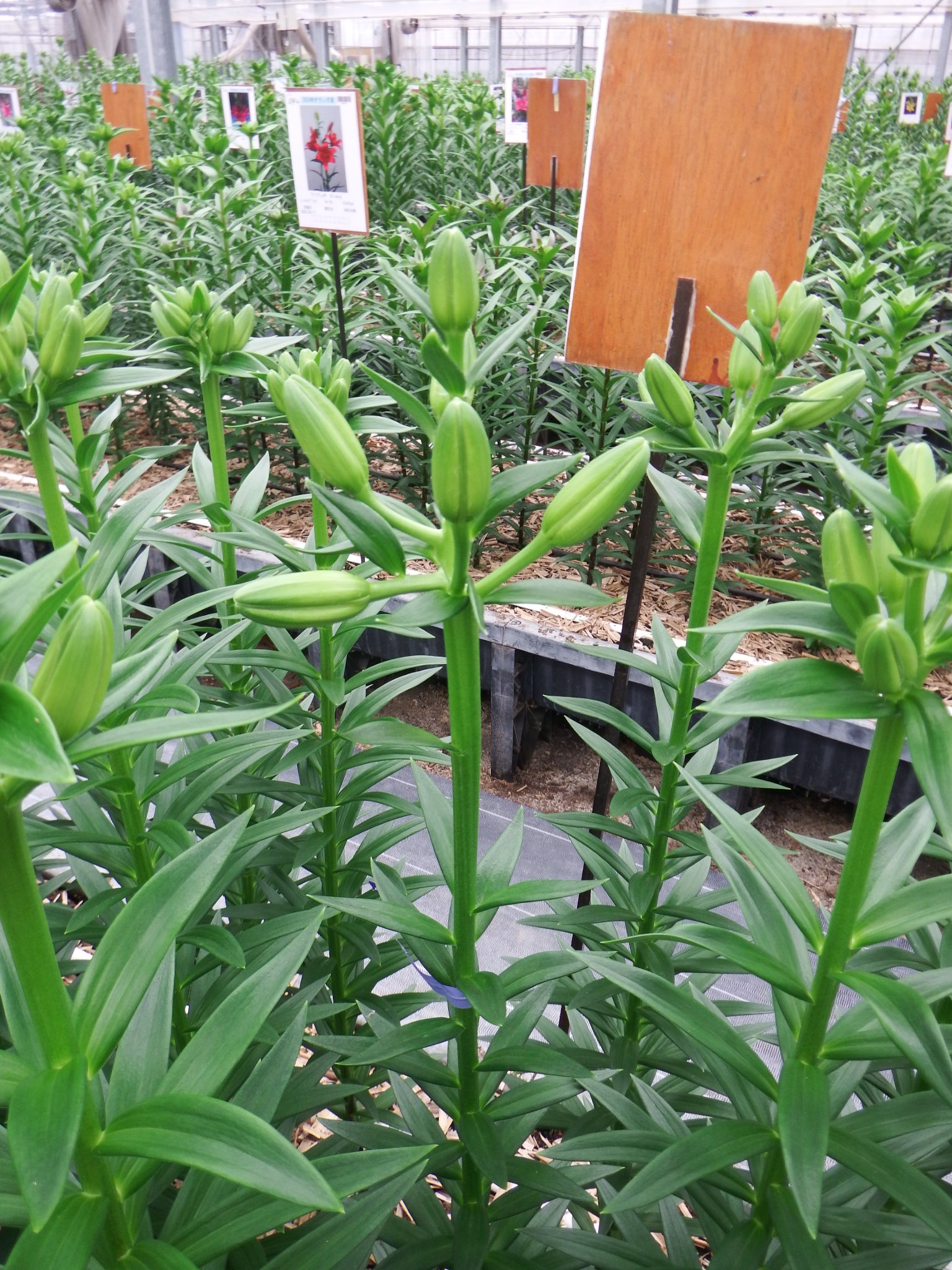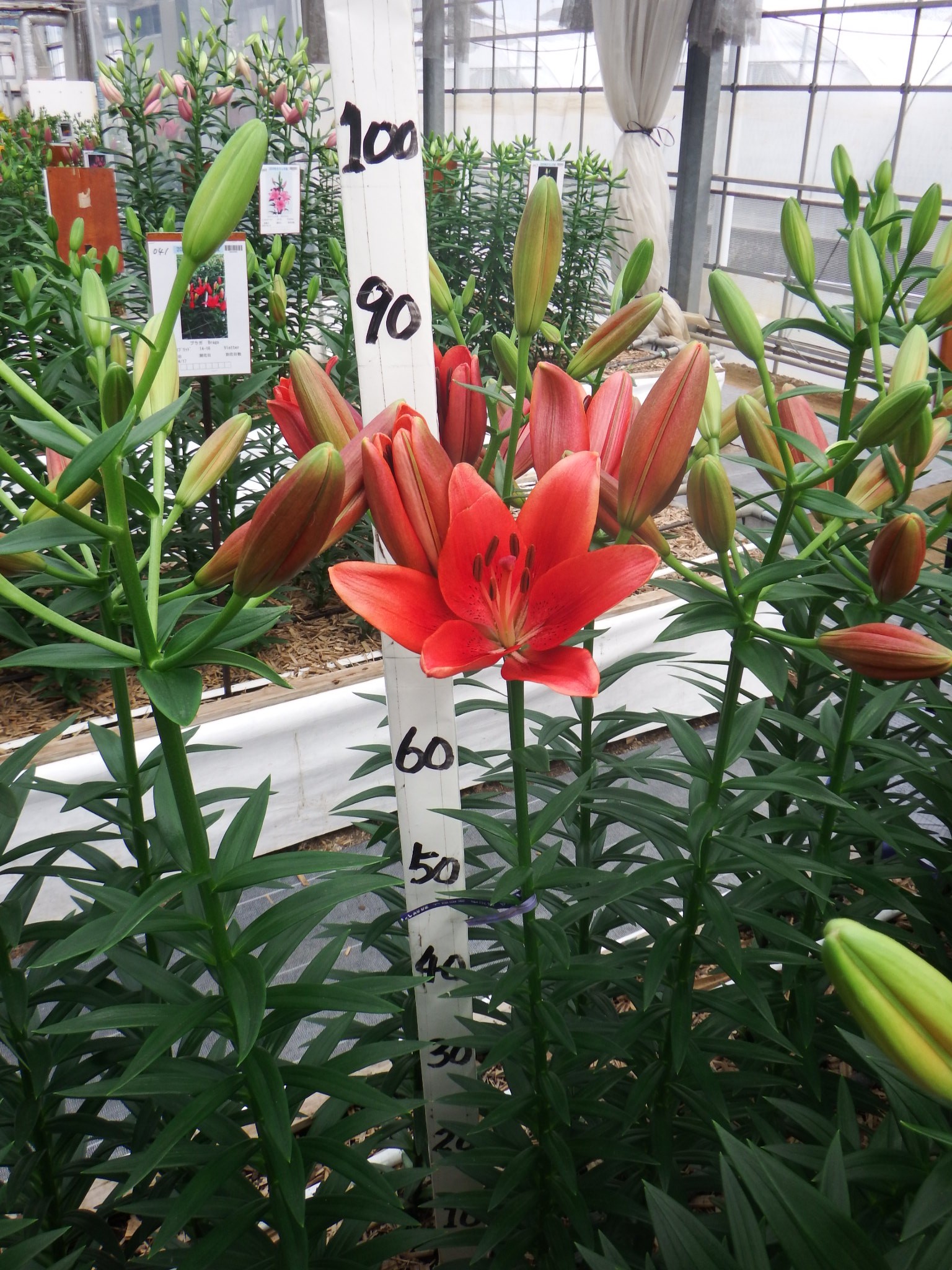 2024年NL産 促成試験 LA 部屋1 バタブス 2025/5/12 2025/5/19 2025/5/29 2025/6/11 2025/6/12 産地 オランダ 品名 バタブス 英語名 Batavus サイズ 14-16 リン数 最小 7 リン数 最多 8 草丈 100 到花日数 早生 色 赤 交配系統 LAハイブリッド 定植日 2025/4/17 開花日 2025/6/11 花直径 16 蕾大きさ 11 枝長 7.5