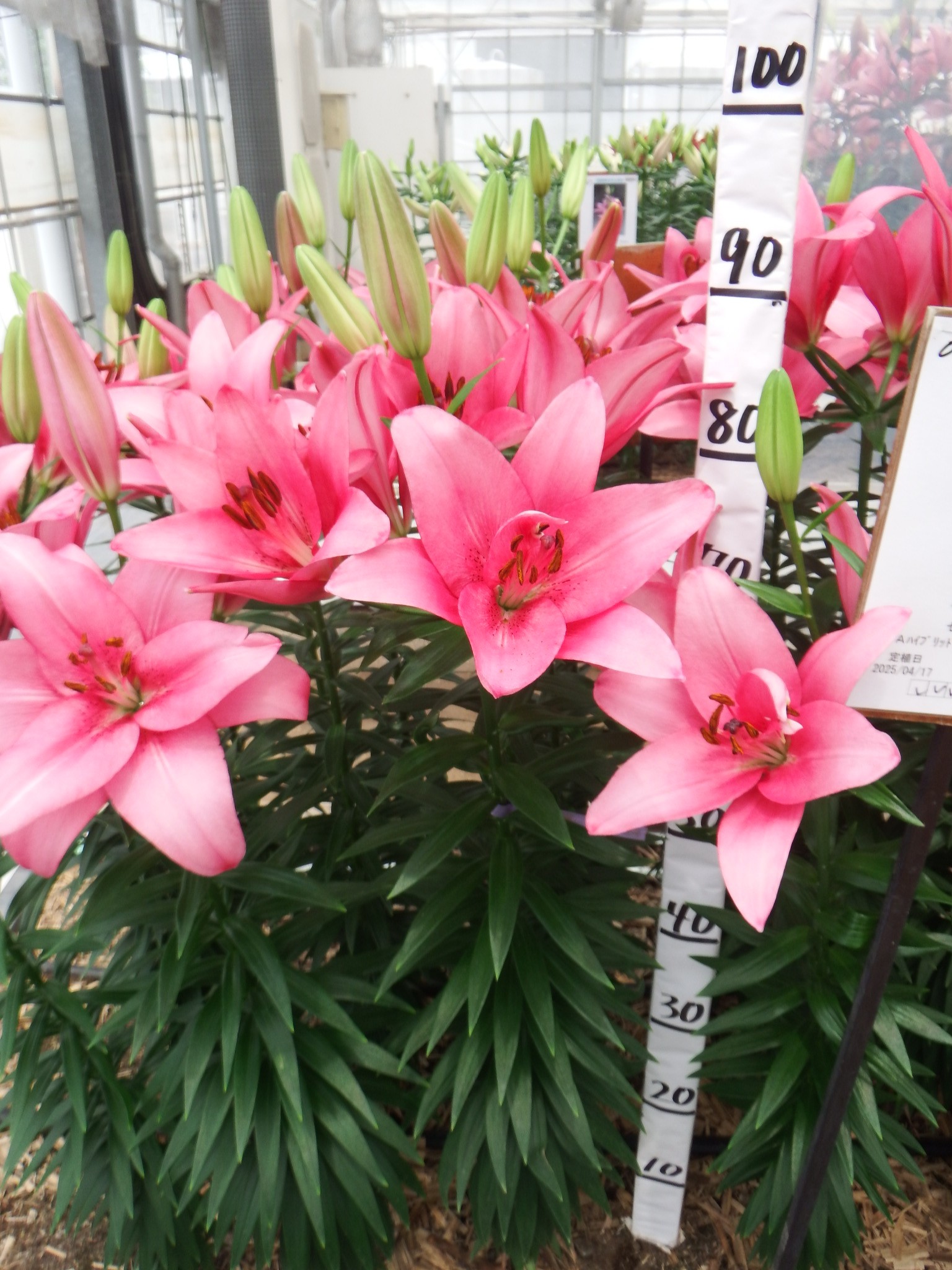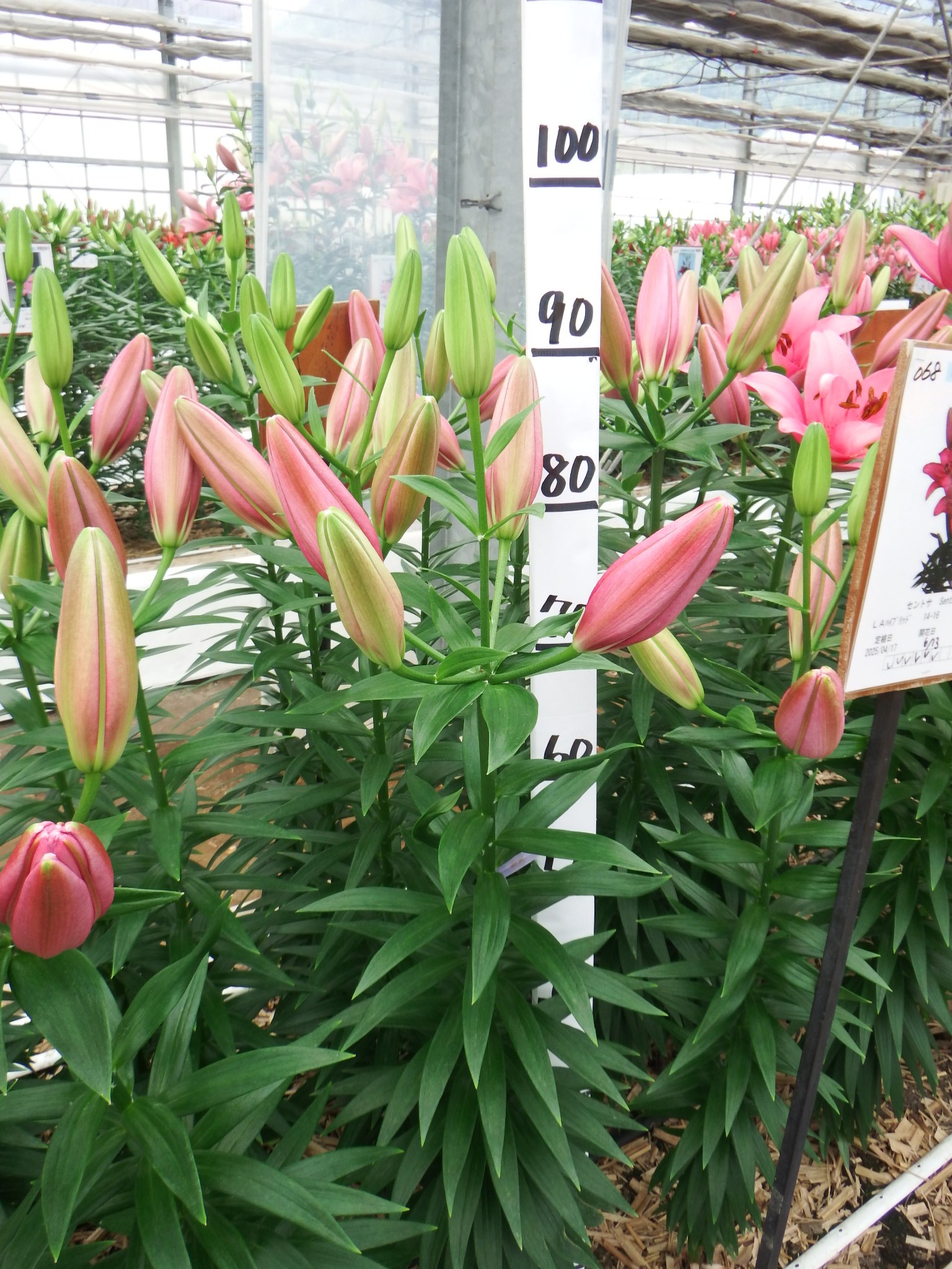2024年NL産 促成試験 LA 部屋2 セントサ 2025/5/12 2025/5/19 2025/6/6 2025/6/13 2025/6/16 産地 オランダ 品名 セントサ 英語名 Sentosa サイズ 14-16 リン数 最小 3 リン数 最多 7 草丈 95 到花日数 中生 色 ピンク 交配系統 LAハイブリッド 定植日 2025/4/17 開花日 2025/6/13 花直径 19 蕾大きさ 12 枝長 7