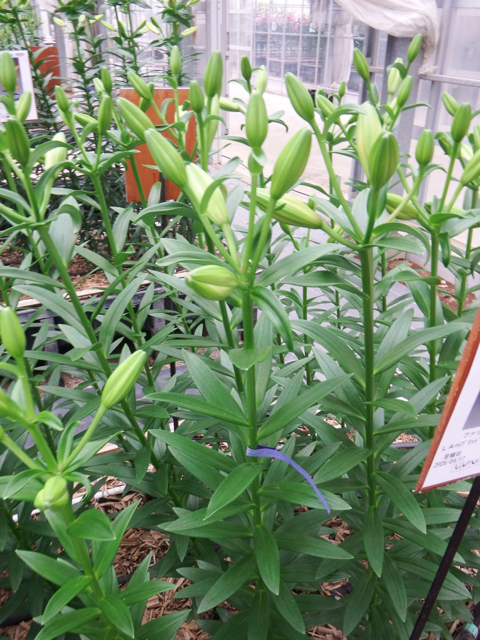 2024年NL産 促成試験 LA 部屋2 ファリネッラ 2025/5/12 2025/5/20 2025/6/6 2025/6/13 2025/6/16 産地 オランダ 品名 ファリネッラ 英語名 Farinella サイズ 14-16 リン数 最小 3 リン数 最多 5 草丈 100 到花日数 早生 色 オレンジ 交配系統 LAハイブリッド 定植日 2025/4/17 開花日 2025/6/14 花直径 21 蕾大きさ 11 枝長 4.5