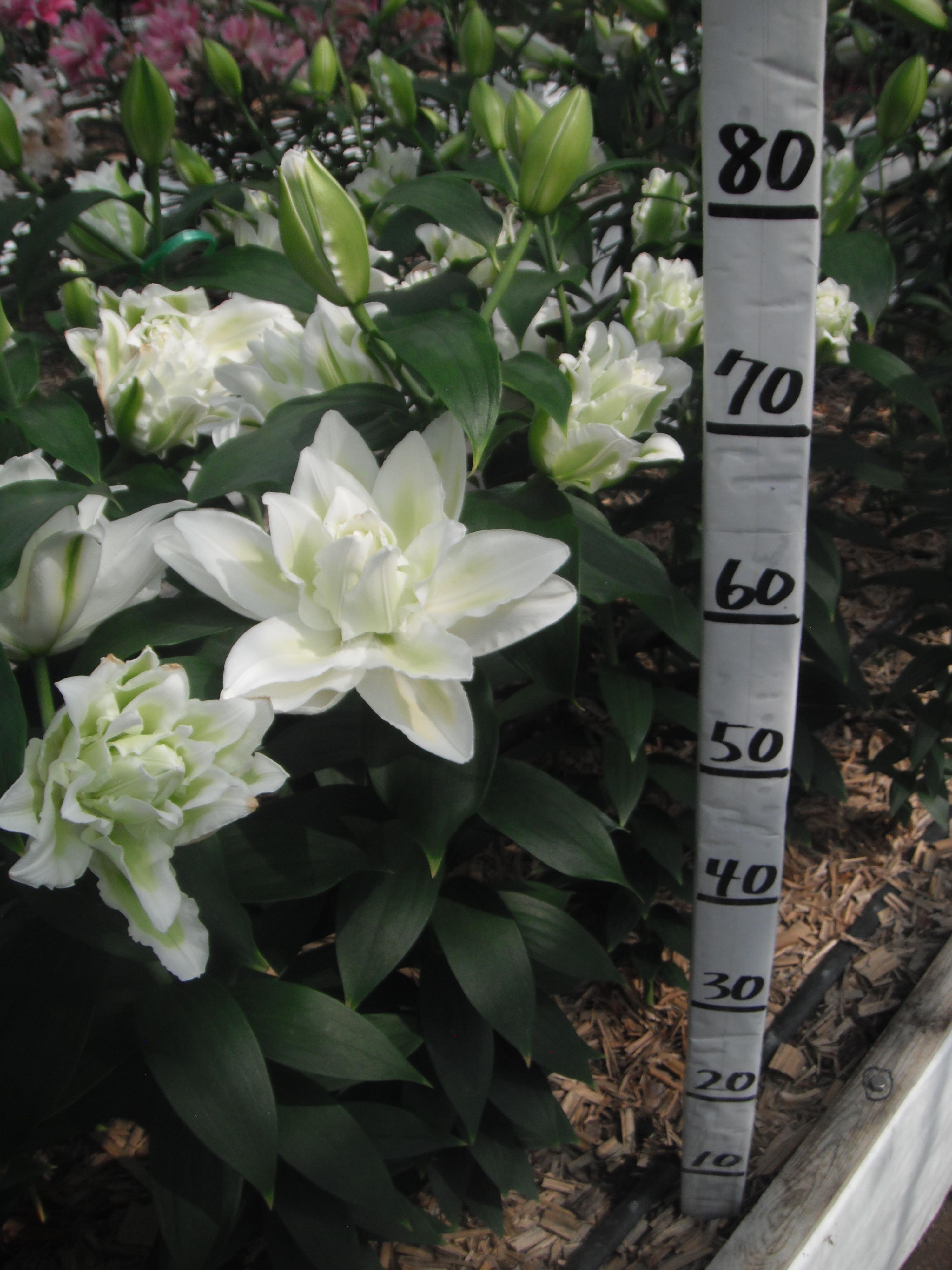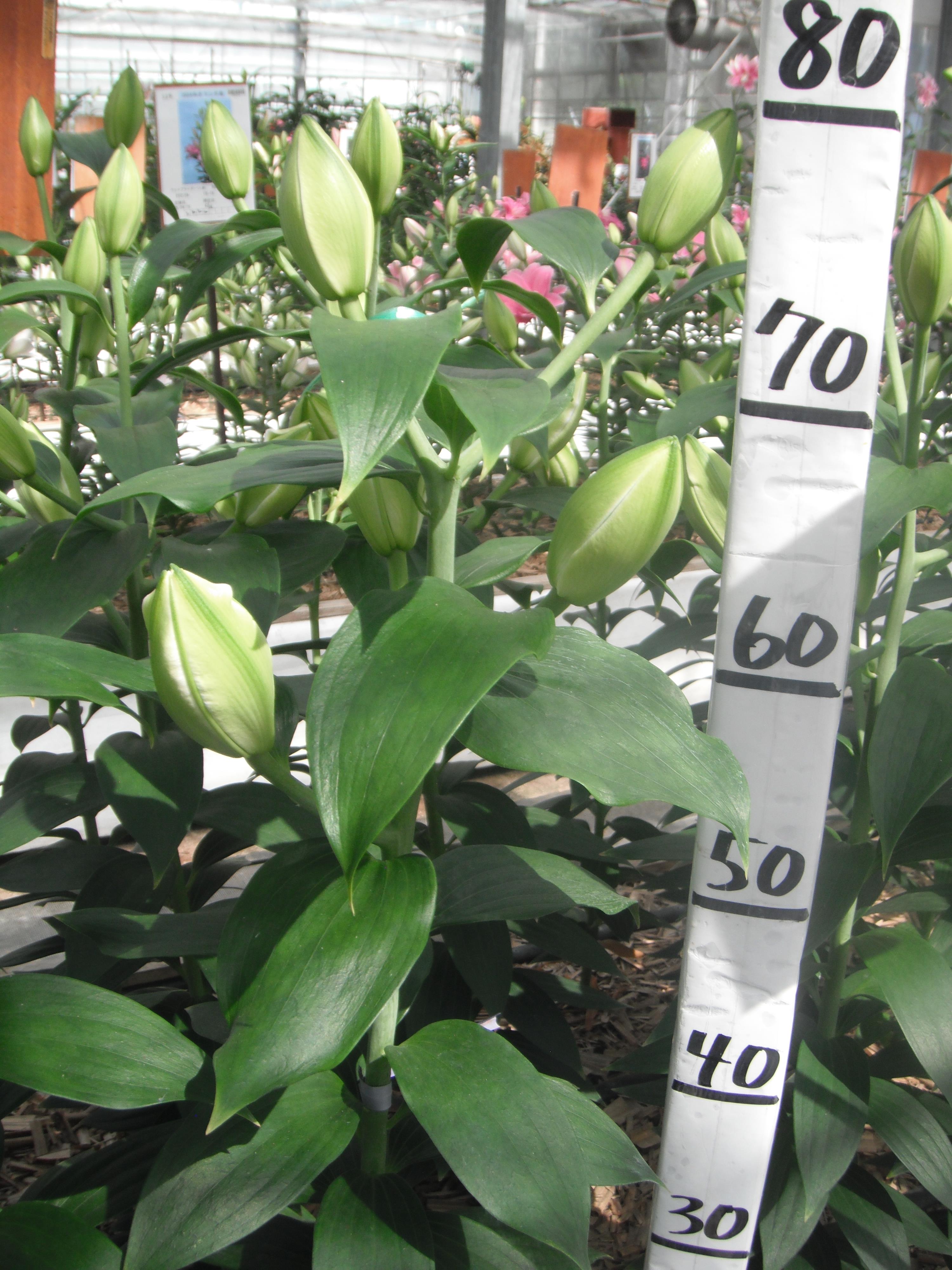 2024年NL産 促成試験 OR/花粉無し/八重 部屋5 ハンバー(八重) 2025/5/7 2025/5/13 2025/6/2 2025/6/27 2025/7/8 産地 オランダ 品名 ハンバー(八重) 英語名 Humber サイズ 16-18 リン数 最小 4 リン数 最多 6 草丈 80 到花日数 晩生 色 白 交配系統 オリエンタル 定植日 2025/4/1 開花日 2025/7/1 花直径 18 蕾大きさ 8 枝長 7.5