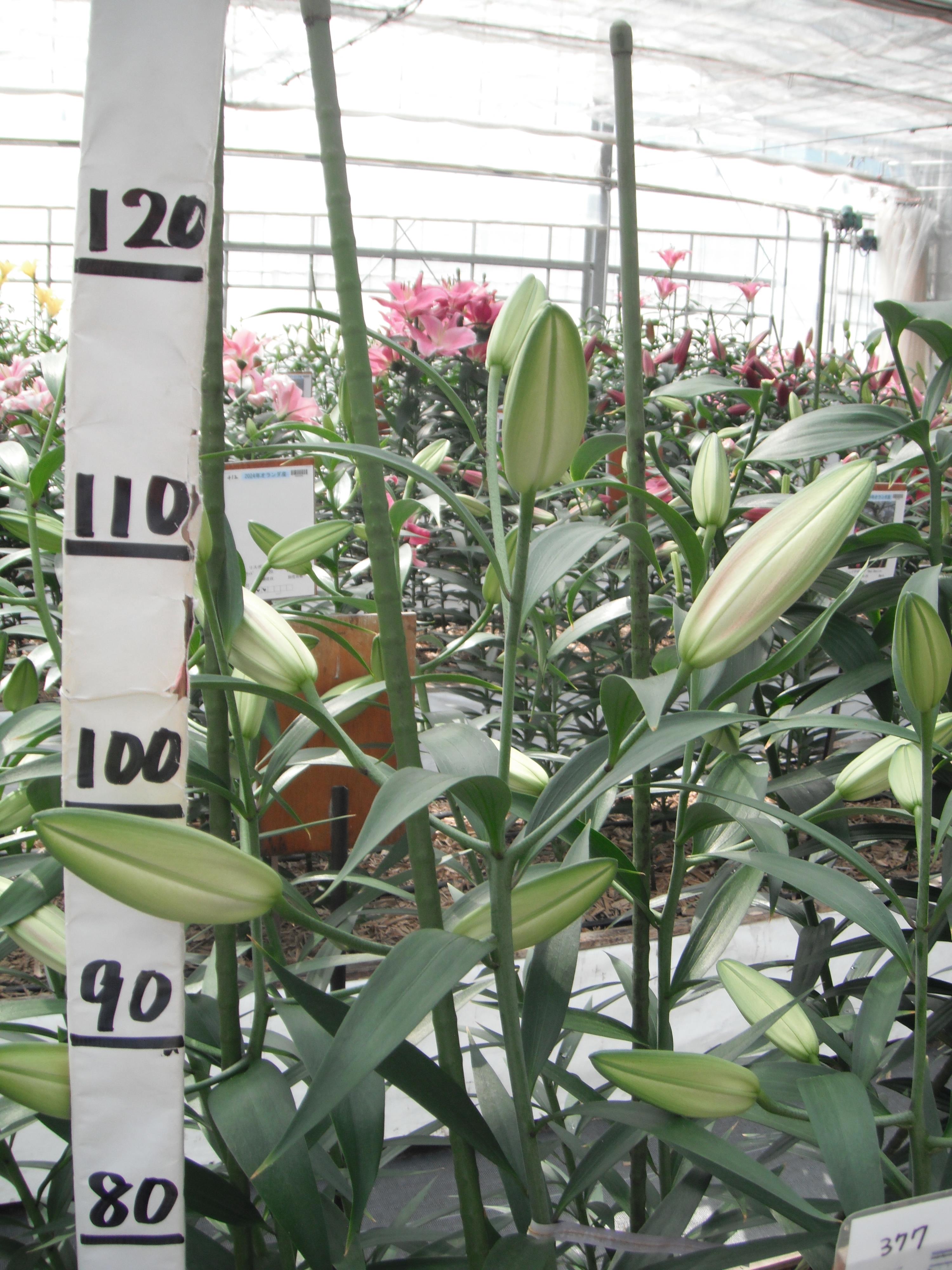 2024年NL産 促成試験 八重/OT 部屋6 ガウチョ 2025/5/2 2025/5/13 2025/6/3 2025/6/20 2025/6/24 産地 オランダ 品名 ガウチョ 英語名 Gaucho サイズ 18-20 リン数 最小 4 リン数 最多 7 草丈 115 到花日数 早生 色 複色輪 交配系統 OTハイブリッド 定植日 2025/4/15 開花日 2025/6/23 花直径 22 蕾大きさ 12 枝長 12