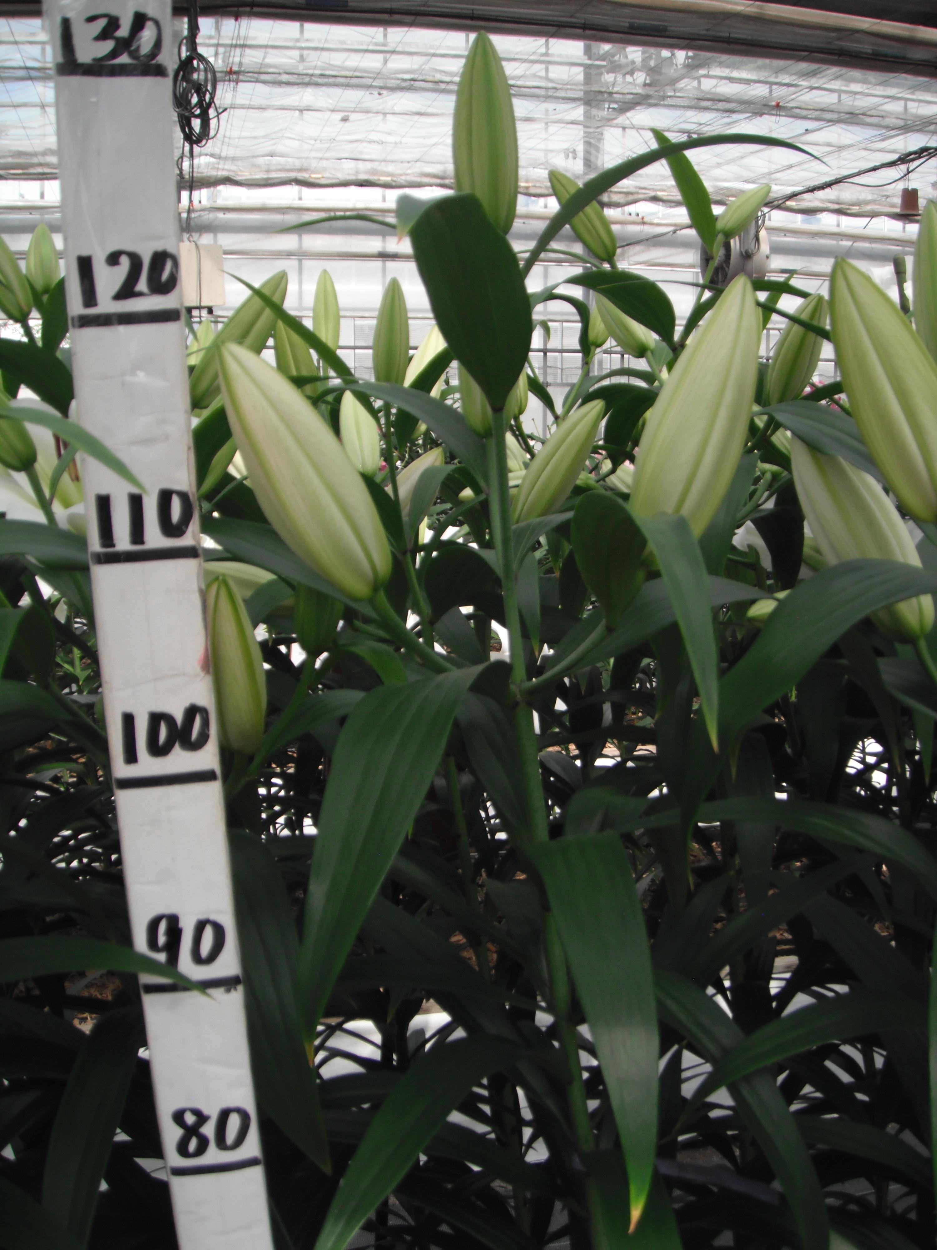 2024年NL産 促成試験 八重/OT 部屋6 ツールマレー 2025/5/7 2025/5/13 2025/6/3 2025/6/25 2025/6/27 産地 オランダ 品名 ツールマレー 英語名 Tourmalet サイズ 20-22 リン数 最小 4 リン数 最多 6 草丈 125 到花日数 早生 色 白 交配系統 OTハイブリッド 定植日 2025/4/15 開花日 2025/6/25 花直径 26 蕾大きさ 17 枝長 10