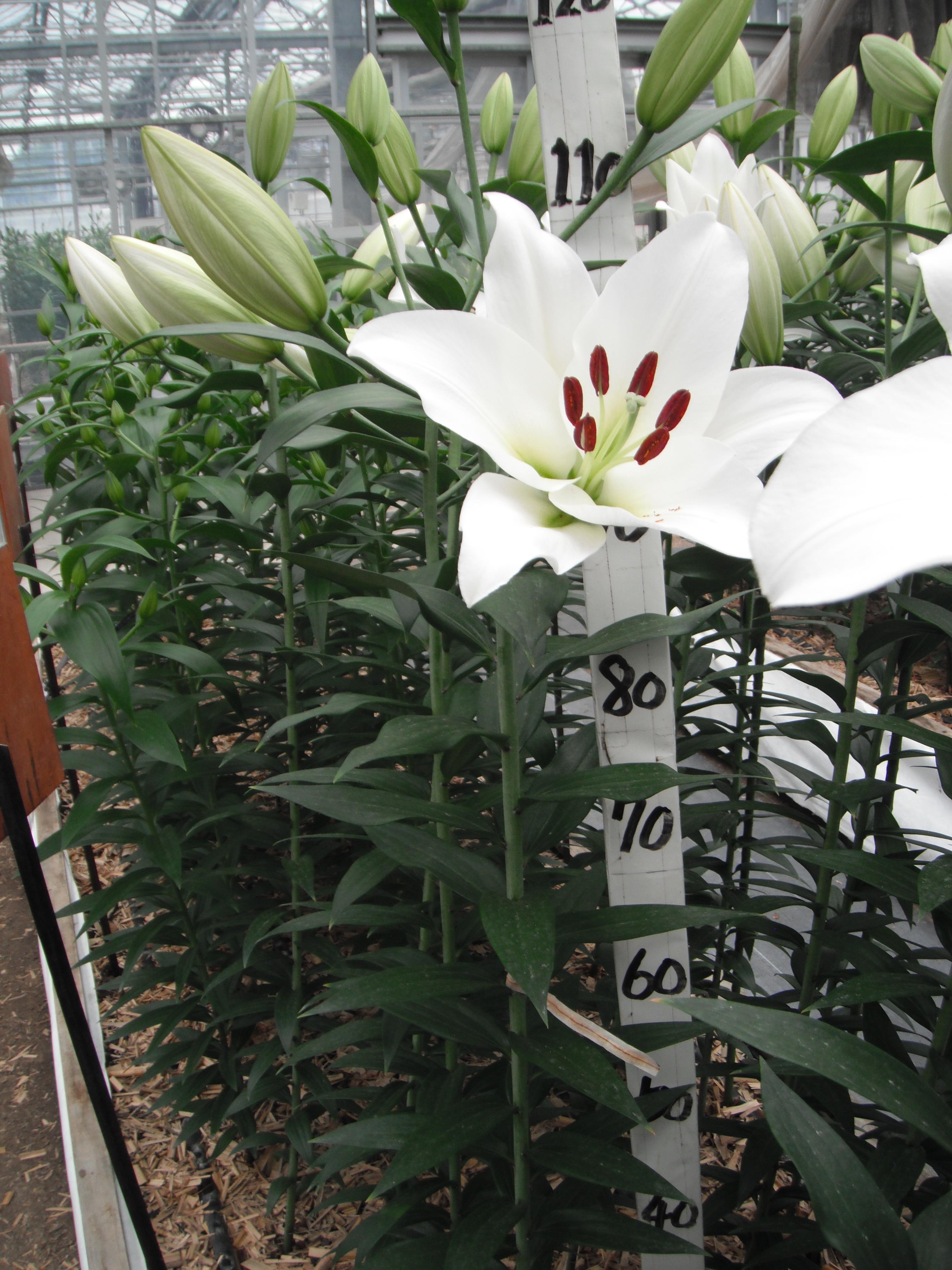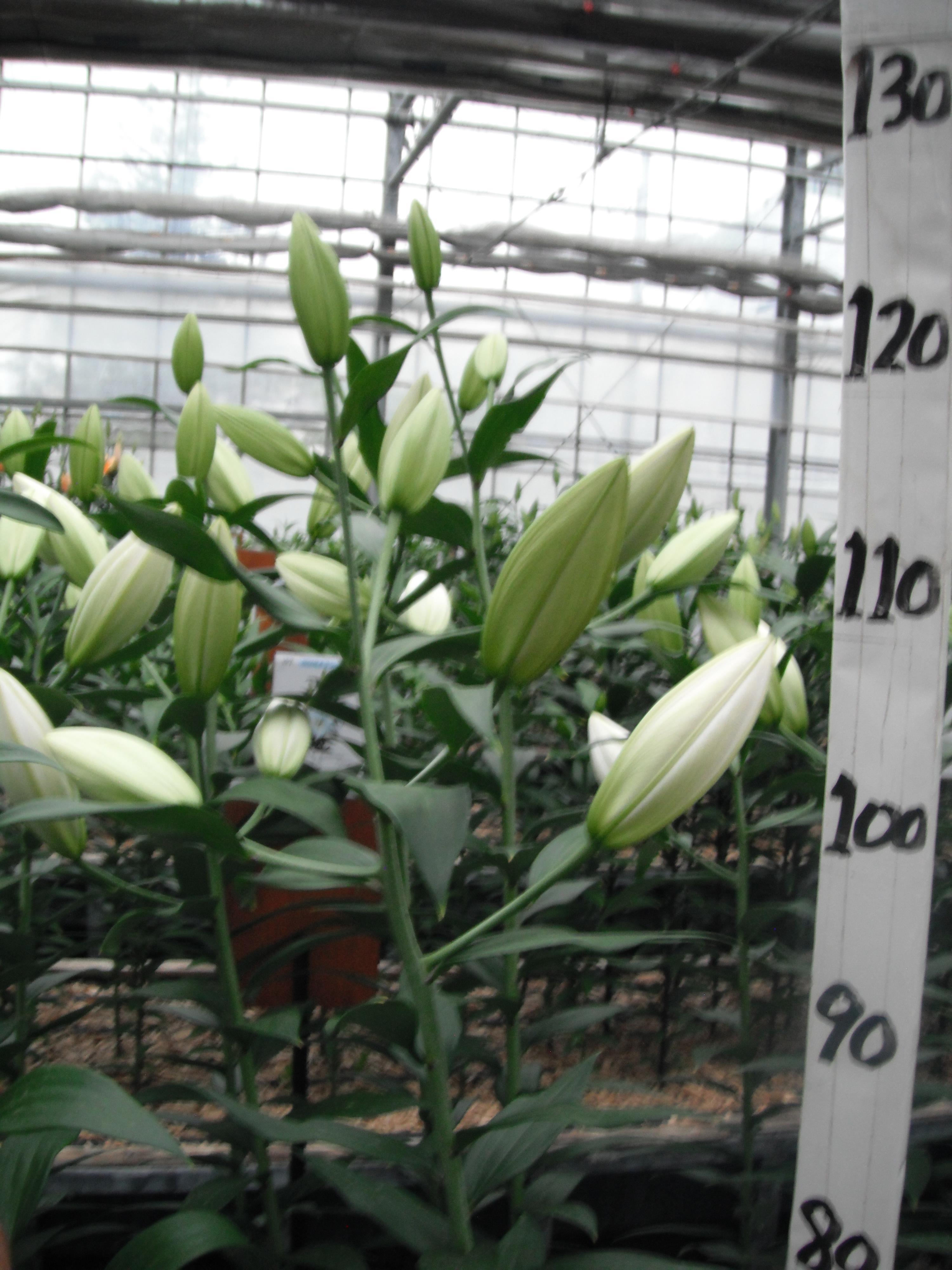 2024年NL産 促成試験 八重/OT 部屋6 ペタカス 2025/4/15 2025/4/25 2025/5/13 2025/6/9 2025/6/18 産地 オランダ 品名 ペタカス 英語名 Petacas サイズ 18-20 リン数 最小 4 リン数 最多 6 草丈 130 到花日数 早生 色 白 交配系統 OTハイブリッド 定植日 2025/3/25 開花日 2025/6/10 花直径 23 蕾大きさ 15 枝長 11
