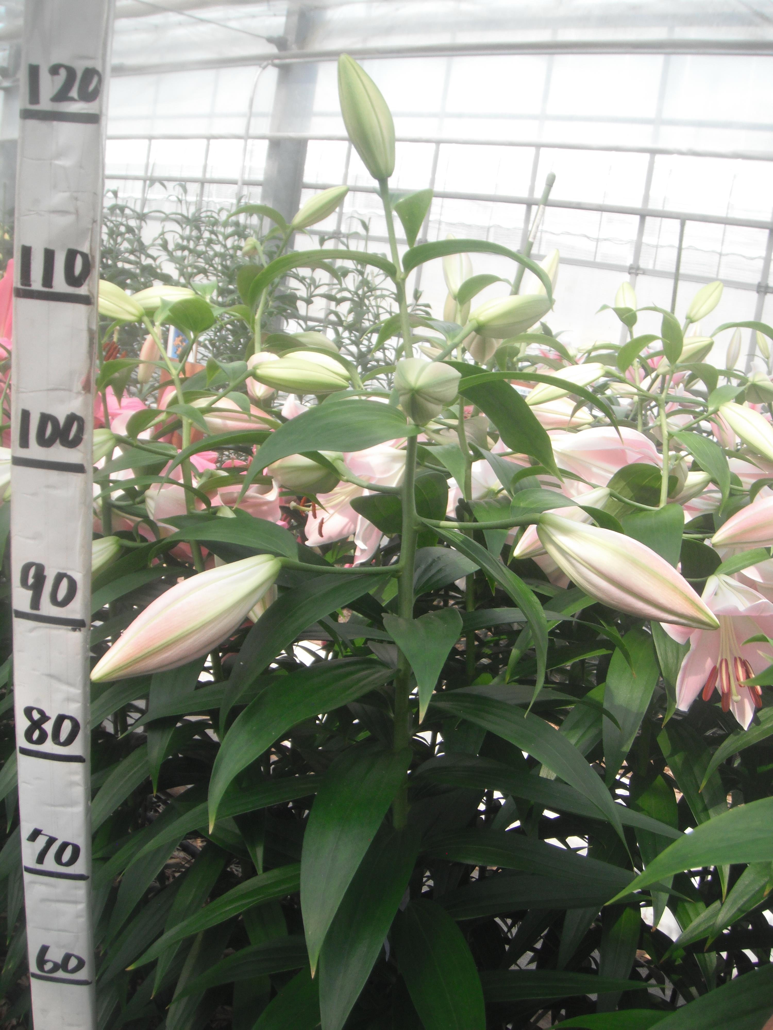 2024年NL産 促成試験 八重/OT 部屋6 ベラモンテ 2025/5/13 2025/5/27 2025/6/11 2025/7/2 2025/7/4 産地 オランダ 品名 ベラモンテ 英語名 Bellamonte サイズ 18-20 リン数 最小 4 リン数 最多 7 草丈 110 到花日数 早生 色 ピンク 交配系統 OTハイブリッド 定植日 2025/4/22 開花日 2025/6/30 花直径 20 蕾大きさ 14 枝長 8