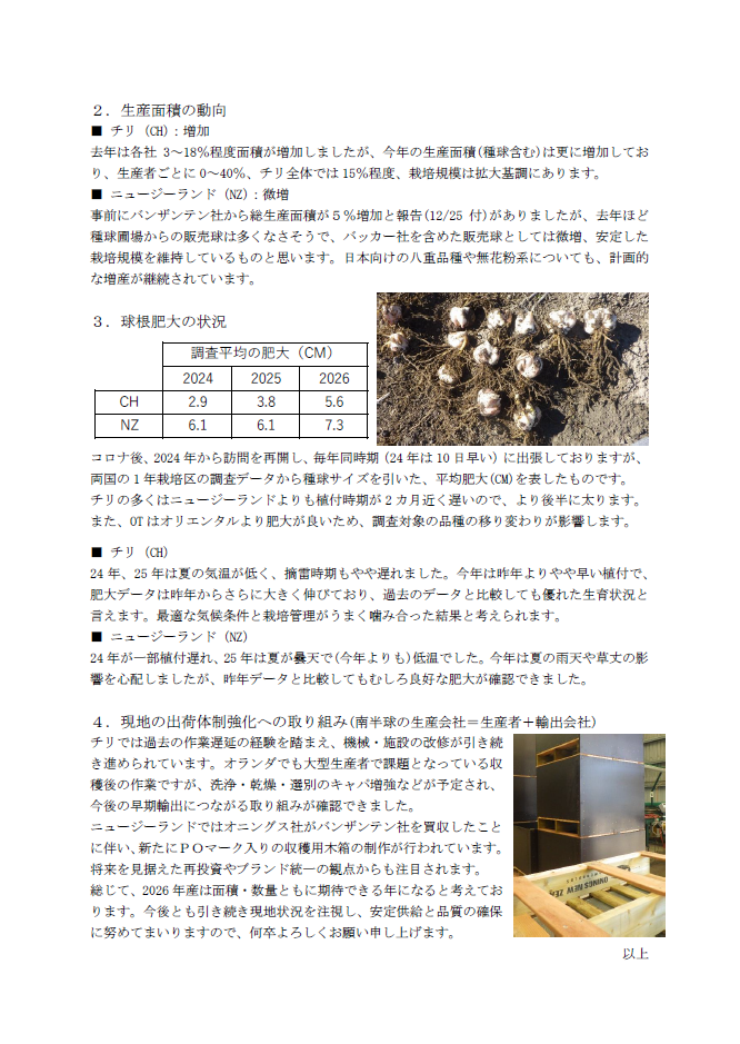 自家発電装置非常時に電力会社から電気が供給されなくても、冷凍庫を稼働させることが可能です。 コンテナ破砕プラント使用済みの空のコンテナをチップ状に破砕し、再資源化しています。破砕機本体は左下の地中に埋め込まれています。 球根温湯処理施設主に国内産鉄砲百合の流水・温湯処理に使われます。 隔離栽培施設育種会社との提携で、商品化を検討しているナンバー品種を試験しています。ヒートポンプ2台による加温を備え、世界的にも最も早いオランダ産新球試験は世界の球根生産者からも注目されています。 |